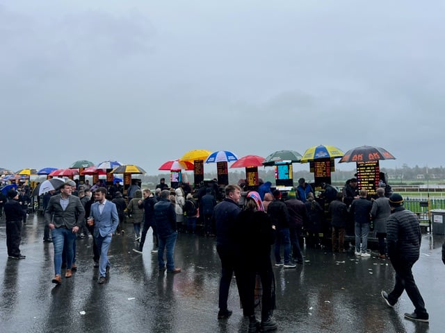 Meanwhile, the weather was miserable, rain and wind aren’t an ideal combination for attracting punters out of the warm bars. ‘It’s decimated business’ was AK’s observation, though the guys in both pitches were doing their best to field some money. Pretty much the first bet in the book for Future Champions Novice Hurdle was €2000 - €400 each-way Down Memory Lane, which set the scene for the race. The favourite Daddy Long Legs was very weak drifting from 7/4 to 5/2 while the public interest was for the former, thrusting soggy notes at the lads at all rates down from 5/1 into 5/2. The race can be described as one of attrition and did go mainly the way of AK's book. The 6/1 winner Caldwell Potter was a €1000 winner in the ledger, six lengths clear of 4/1 Predator’s Gold. I say mainly, because plodding on gallantly through the mud 38 lengths back in third was Down Memory Lane to land the place money which really did take the shine off the race. The 6/4 to 5/2 drifter Daddy Long Legs was pulled up two out, they're like Mystic Meg these punters sometimes.
