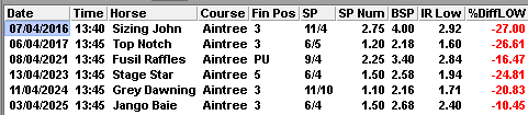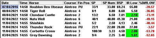 LTO winners were 0-8 (I was surprised that so few of the 74 runners were arriving at Aintree on the back of a victory)…