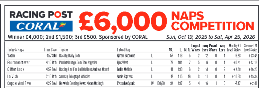 Racing Post Naps Table