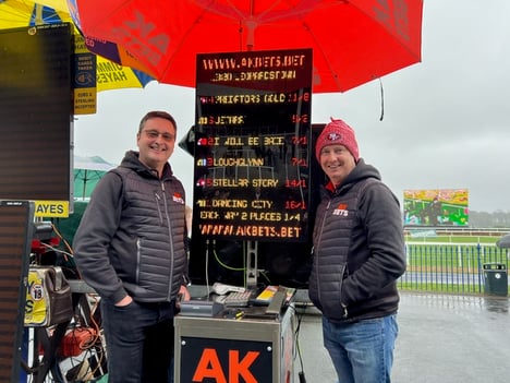 There were several people who came to the AK pitch for bets early and to say hello, they included George, Barney, who I sadly missed first time around but he came back shortly afterwards, Andrew from Sweden and Jack, not Jock, sorry Jack it was the Newcastle accent and Kyle. It’s brilliant to be told that people read these blogs and enjoy them. Apart from me having the easy job of just writing about people working, the AK Bets team today were AK, Tony, aka AK senior, and Dave ‘Tidler’ on the top Tatts pitch with Dave ‘Gogglebox Ire’ O’Reilly and Graham Sullivan on the middle Tatts position.