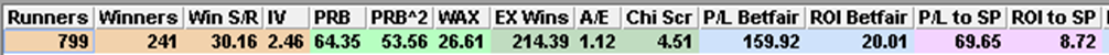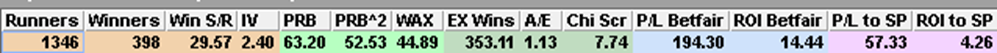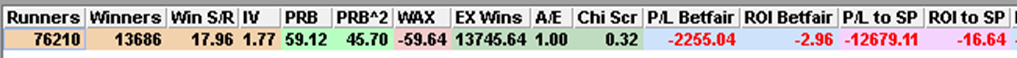 …the 13,686 winners was 59.64 fewer than the market expected and backing them blind returned a loss of more than £12,500 at SP (though ‘only’ -£2,255.04 at Betfair SP after 2% commission).