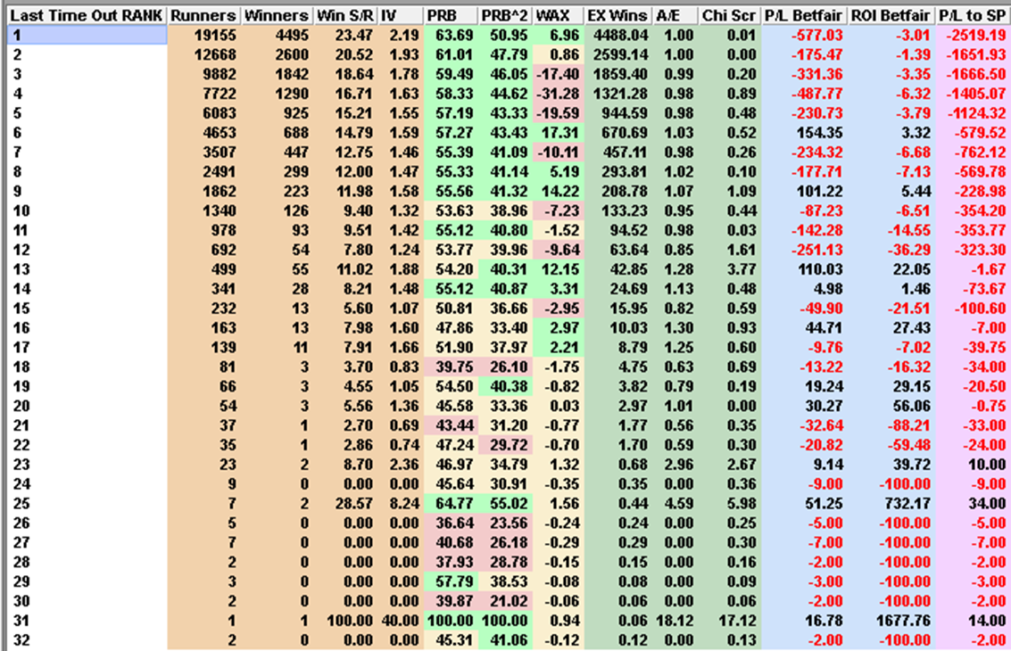 …those who were ranked top (1) on last time out speed had a superior strike-rate to those ranked second (2), who in turn had a better strike-rate than those ranked third (3), all the way down to tenth place.