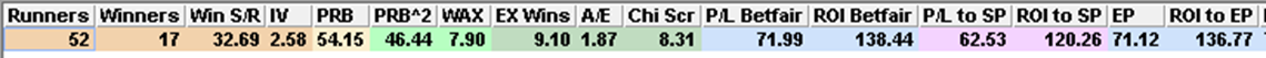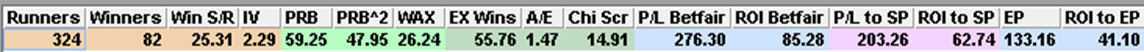 …a fantastic profit of £203.26 at SP (+62.74% on turnover) and +£276.30 at BSP (+85.28%).
